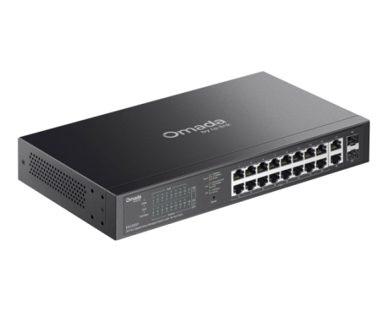 TP-Link Omada ES220GP je zmogljivo in zanesljivo gigabitno stikalo, zasnovano za nadzorne sisteme, manjša podjetja in profesionalna omrežja, ki zahtevajo stabilno PoE+ napajanje ter centralizirano upravljanje. Opremljeno je z 18 gigabitnimi RJ45 priključki, od katerih jih 16 podpira PoE+ (802.3af/at), ter z dvema gigabitnima SFP režama za optične povezave. Skupni PoE budget znaša 150 W, posamezen port pa lahko zagotovi do 30 W, kar omogoča napajanje večjega števila IP kamer, dostopnih točk in drugih PoE naprav.