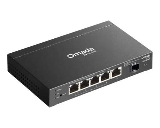 TP-Link Omada SG2206MP je kompaktno, tiho in zmogljivo gigabitno stikalo, zasnovano za manjša poslovna okolja, nadzorne sisteme in Wi-Fi postavitve, kjer je pomembna zanesljivost ter enostavno upravljanje. Opremljeno je s štirimi gigabitnimi PoE+ RJ45 priključki in eno gigabitno SFP režo, kar omogoča prilagodljivo povezljivost in napajanje različnih omrežnih naprav.
