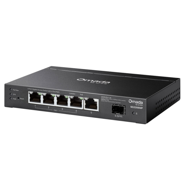 TP-LINK Omada SG2206MP 6-port Gigabit 4xPoE+ 1xSFP mrežno stikalo-switch