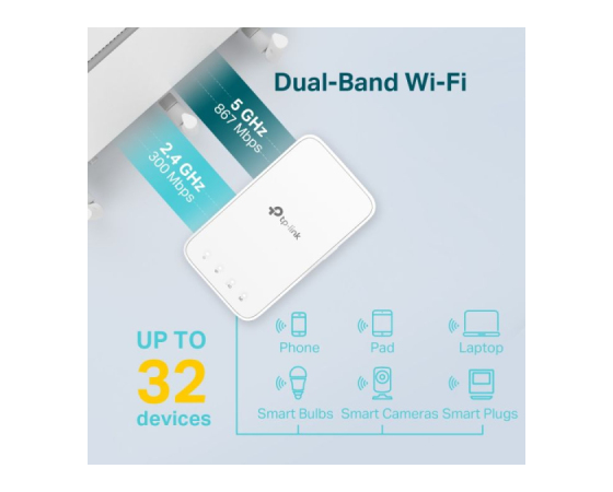 Deluje tako v frekvenčnem pasu 2,4 GHz (300 Mbps) kot v pasu 5 GHz (867 Mbps) za stabilnejšo brezžično izkušnjo.