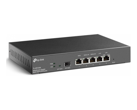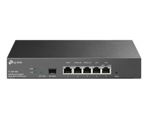 TP-LINK SafeStream TL-ER7206 Gigabit Multi-WAN VPN usmerjevalnik router ponuja odlične zmožnosti procesiranja podatkov in različne moćne funkcije vključno z IPsec/PPTP/L2TP VPN, Load Balance, Access Control, DoS Defense, Bandwidth Control, in tako dalje. Usmerjevalnik/ router ima centrilizirano upravljanje v oblaku in inteligentno spremljanje, saj je integriran v Omada SDN (ZTP). Priprava Zero-Touch Provisioning zahteva uporabo krmilnika v oblaku Omada. 1x gigabitni SFP in 5x gigabitni RJ45 priključki zagotavljajo visokohitrostno žično povezljivost.