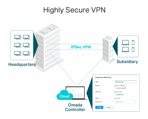 TL-ER7206 podpira različne VPN protokole vključno z IPsec, PPTP, L2TP VPN načini in lahko upravlja tudi s prehodnim prometom. Vgrajen strojni NAT pogon omogoča usmerjevalniku podporo in upravljanje do 100 LAN-to-LAN/Client-to-LAN IPsec VPN povezave, 50? OpenVPN*, 50? L2TP, in 50? PPTP VPN. Napredne VPN funkcije vključujejo DES/3DES/AES128/AES192/AES256 enkripcijo, MD5/SHA1 avtentifikacijo, NAT Traversal(NAT-T), Dead Peer Detection(DPD), Perfect Forward Secrecy(PFS).