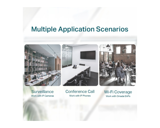 TP-LINK TL-SG116P je zanesljivo in učinkovito 16-portno gigabitno stikalo, zasnovano za domača, pisarniška in mala poslovna omrežja. Porti podpirajo PoE+ (802.3af/at), kar omogoča neposredno napajanje IP kamer, dostopnih točk, VoIP telefonov in drugih PoE naprav brez potrebe po dodatnih kablih ali napajalnikih. S skupnim PoE proračunom 120 W stikalo omogoča stabilno napajanje več naprav hkrati. Energetsko učinkovita tehnologija zmanjšuje porabo energije glede na obremenitev, kovinsko ohišje in fanless zasnova pa zagotavljata tiho delovanje in dolgoročno zanesljivost.