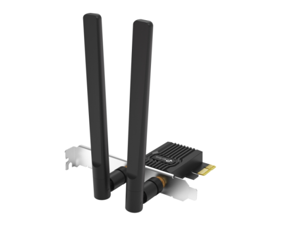 Archer T4E V3 je dvopasovni brezžični PCI Express adapter, zasnovan za stabilno in hitrozmogljivo Wi-Fi povezavo v namiznih računalnikih. Naprava podpira standard IEEE 802.11ac, ki omogoča hitrosti do 867 Mbps v 5 GHz pasu ter do 300 Mbps v 2,4 GHz pasu, kar zagotavlja zanesljivo delovanje pri pretakanju, spletnih aplikacijah in vsakodnevnih omrežnih opravilih. Adapter uporablja dve snemljivi dvopasovni anteni, ki omogočata boljšo pokritost in optimalen sprejem signala v različnih postavitvah.