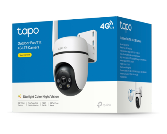 Tapo C501GW omogoča prilagodljivo postavitev in zanesljivo delovanje v različnih okoljih, saj podpira tako 4G LTE kot žično Ethernet povezavo. Zaradi zasnove z vrtljivim in nagibnim mehanizmom omogoča široko pokritost in spremljanje večjih območij, medtem ko barvni nočni vid ter infrardeče osvetlitev poskrbijo za jasno in podrobno sliko tudi v temi. Kamera omogoča ločljivost 1080p pri do 30 sličicah na sekundo, kar zagotavlja tekoče in ostre video posnetke.