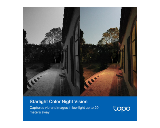 - Nočni vid Starlight Color : Zajame žive slike pri šibki svetlobi do 20 metrov stran.