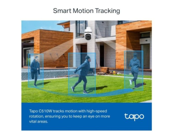Pametno sledenje gibanju-Tapo C510W sledi gibanju z visoko hitrostjo vrtenja, kar vam zagotavlja, da pazite na bolj vitalna področja.