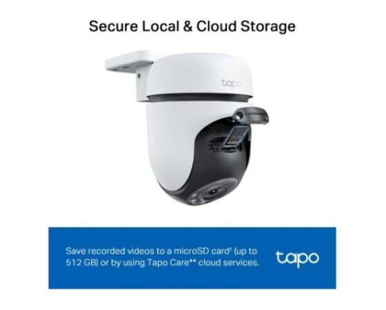 Lokalna shramba in shramba v oblaku - shranite posnete videoposnetke na kartico microSD (do 512 GB)† ali z uporabo storitev v oblaku Tapo Care**.