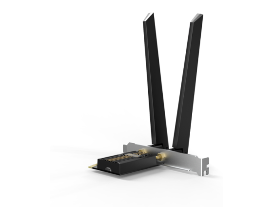 Kartica je opremljena z dvema zunanjima antenama z visokim ojačanjem, ki izboljšata sprejem signala in zagotavljata širšo pokritost tudi v večjih prostorih. Vgrajen hladilni element poskrbi za stabilno delovanje pod obremenitvijo, Bluetooth 5.4 pa omogoča zanesljivo povezovanje dodatne opreme s pomočjo notranjega F-USB priklopa.