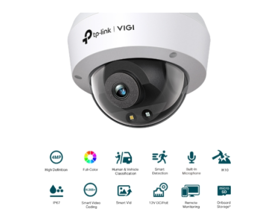 IK10 Odporen proti vandalizmu & IP67 Vodoodporen: Ta kupolasta kamera VIGI z odpornim proti vandalizmu robustnim ohišjem in vodotesno zasnovo je izdelana tako, da vzdrži vandalizem in težka okolja z dežjem in prahom za stalno varnost kjer koli in kadarkoli.