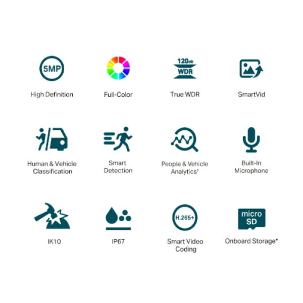 IK10 Odporen proti vandalizmu in IP67 Vodoodporen: z odpornim proti vandalizmu, robustnim ohišjem in vodotesno zasnovo je ta kupolasta kamera VIGI izdelana tako, da vzdrži vandalizem in težka okolja z dežjem in prahom za stalno varnost kjer koli in kadarkoli.
