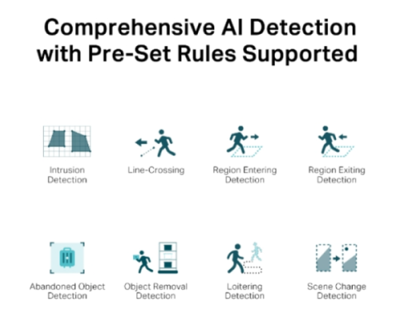 Pametno zaznavanje: aktivno zazna neobičajne dogodke, kot sta vdor v območje in prečkanje črte, ter vam takoj pošlje obvestila.