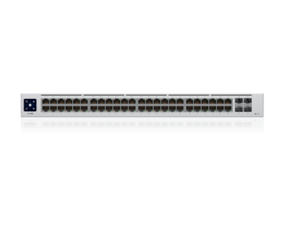 Vsestranski USW 48 PoE zagotavlja povezave Gigabit PoE do ethernetnih naprav, hkrati pa nudi možnosti povezave z gigabitnimi optičnimi vlakni, primerne za omrežje podjetij.