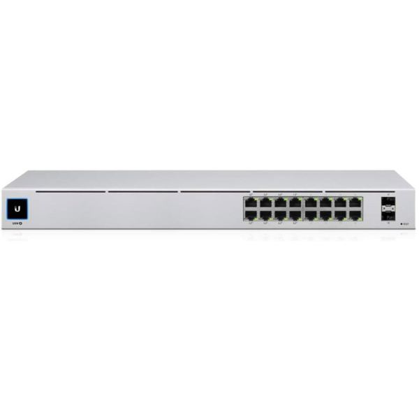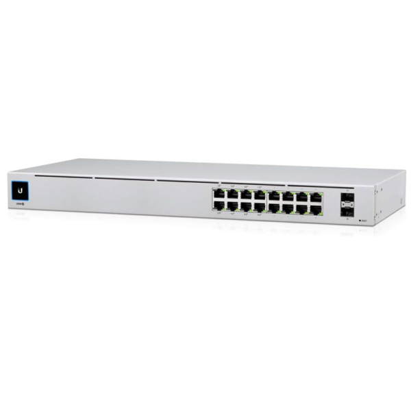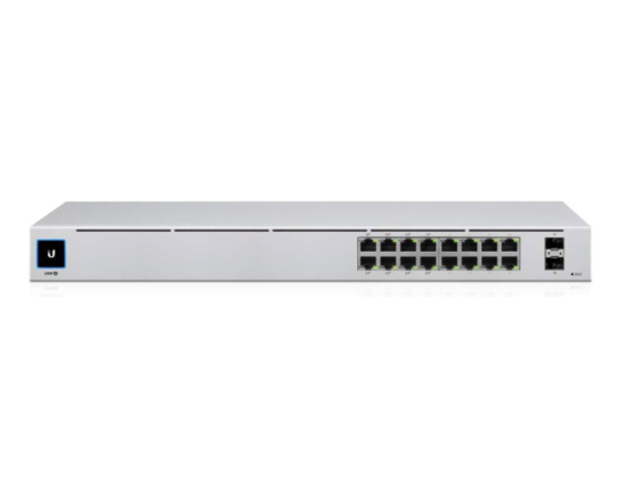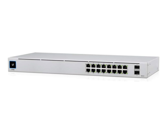 UniFi Switch 16 PoE je kompaktno 16-port Layer 2 stikalo, zasnovano za manjša podjetja, pisarne in domača omrežja, kjer je pomembna zanesljivost, tiho delovanje in enostavno upravljanje prek UniFi Network. Opremljen je z osmimi PoE+ priključki in dvema SFP režama za optične povezave, zato je primeren za napajanje dostopnih točk, kamer in drugih PoE naprav.
