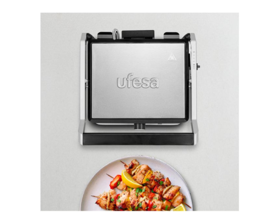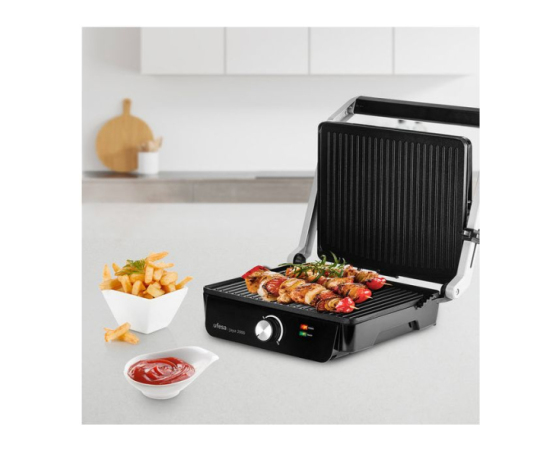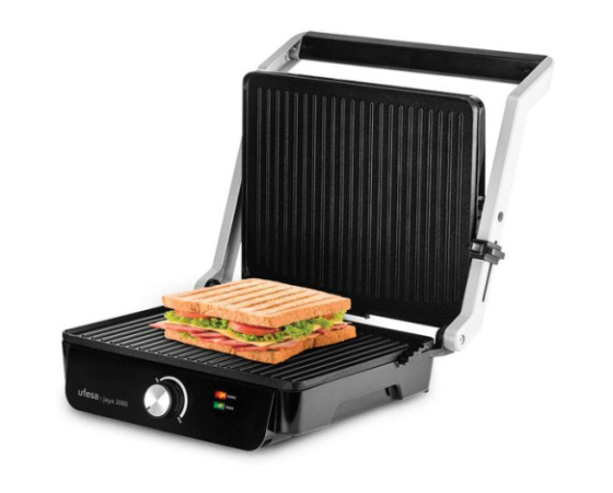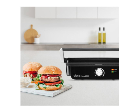 Pripravljajte okusne in uravnotežene obroke z električnim žarom Ufesa Press Grill Jaya 2000. Z močjo 2000 W zagotavlja hitro segrevanje in učinkovito pripravo vseh vrst hrane – od sočnih zrezkov do pečene zelenjave ali rib.