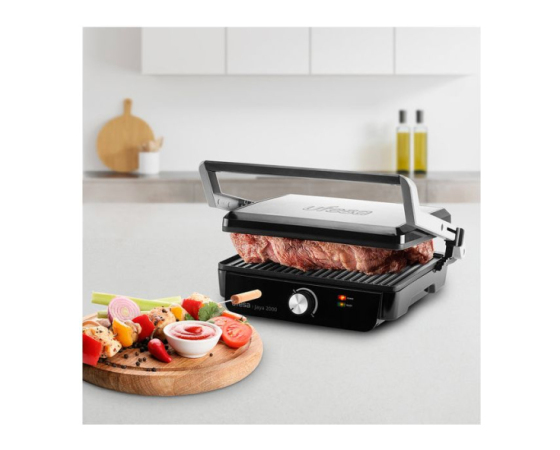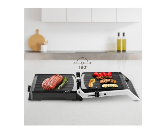Njegova 180° odprtina omogoča, da obe plošči uporabljate hkrati kot klasičen žar in tako pripravite več hrane naenkrat. Neoprijemljive plošče velikosti 29 × 24,5 cm zagotavljajo enakomerno peko brez prijemanja hrane in omogočajo enostavno čiščenje.