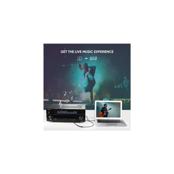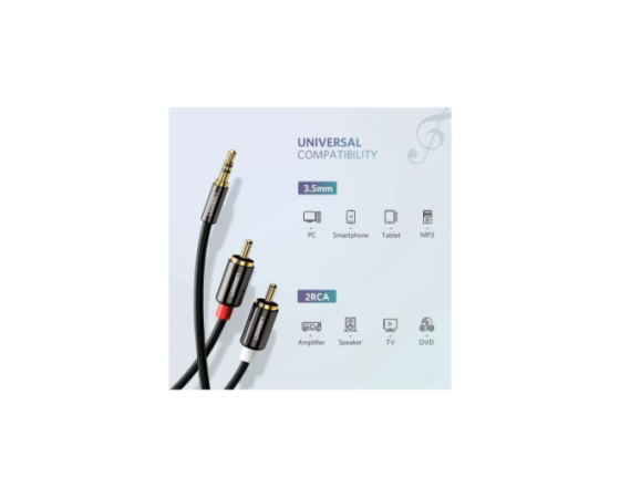 Združljiv z iPhone, iPod, iPad, MP3 predvajalniki, CD predvajalniki, prenosniki, tablicami in drugimi digitalnimi napravami s 3,5 mm avdio priključkom; in domači avdio sistemi, kot je ojačevalnik ali sprejemnik z vtičnicami RCA (bela/leva in rdeča/desna vtičnica).