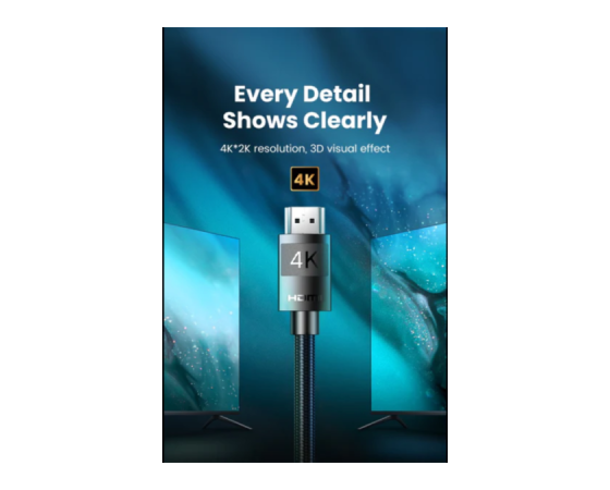 kabel UGREEN 4K HDMI 2.0 v celoti podpira visokokakovostno sliko 4:4:4 Chroma, HDR/HDR 10, 1080P HD, UHD in 1440p QHD. 4K HDMI HDR Lead ima 3D učinek, 48-bitno globoko barvo in način Mirror & Extend, podpira tudi monitor Full HD 16:9 in ultra-širok zaslon za igre 21:9. Kabel 4K HDMI UHD je idealen spremljevalec za hišni kino, igralne centre in konferenčne sobe.