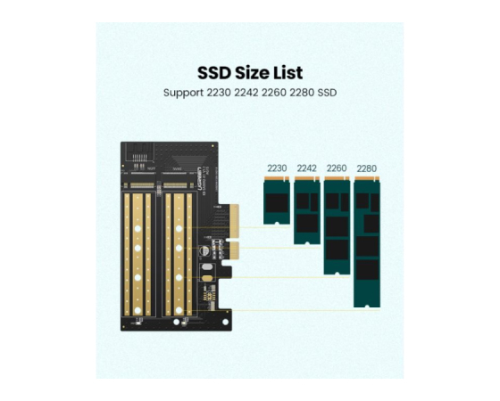 UGREEN 70504 PCIe na M2 adapter M.2 NVME na PCI-E 3.0 razširitvena kartica z M.2 SATA podporo in 32Gbps/6Gbps prenosom podatkov