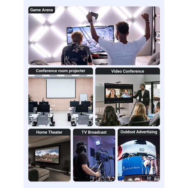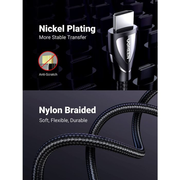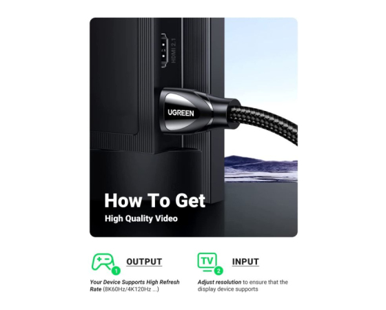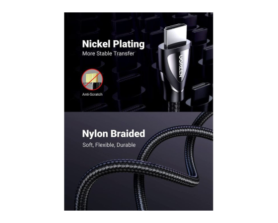 UGREEN 8K HDMI kabel podpira ločljivost 8K@60HZ, 4K@120HZ in več. Z edinstvenim eARC/dinamičnim HDR 8K HDMI lahko uživate v popolni zvestobi zvoka in Dolby Atmos, ki zagotavlja kinematografsko izkušnjo ultra visoke ločljivosti in 3D vizualne učinke kot v kinu.