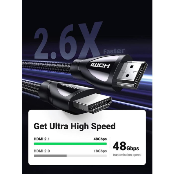HDMI 2.1 predstavlja najnovejšo tehnologijo HDMI in podpira pasovno širino do 48 Gb/s, pri čemer je hitrost prenosa približno 2,6-krat hitrejša od HDMI 2.0.