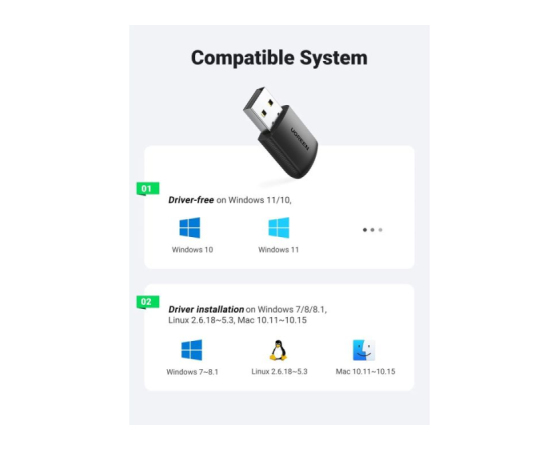 UGREEN USB wifi adapter podpira pasove 2,4 GHz in 5,0 GHz hkrati in se lahko samodejno preklopi v različnih situacijah.