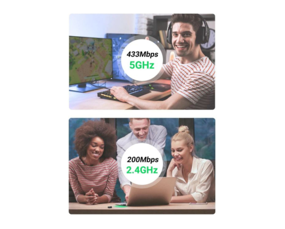 UGREEN AC650 USB omrežni adapter do 433 Mbps v pasu 5,0 GHz in do 200 Mbps v pasu 2,4 GHz.