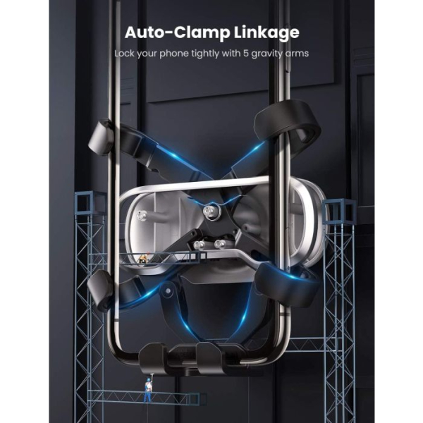 Samodejno odpiranje in zapiranje. Odlična stabilnost: Nosilec avtomobila, ki se samodejno preoblikuje po principu gravitacije. Držalo se samodejno preoblikuje z gravitacijo vašega pametnega telefona, da varno zadrži vaš pametni telefon.