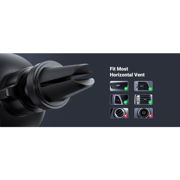 Preprosto ga pritrdite na prezračevalno odprtino v avtomobilu, nato pa pametni telefon odložite naravnost v njegov nosilec, nosilec se bo zaradi gravitacije varno samodejno zaklenil.