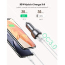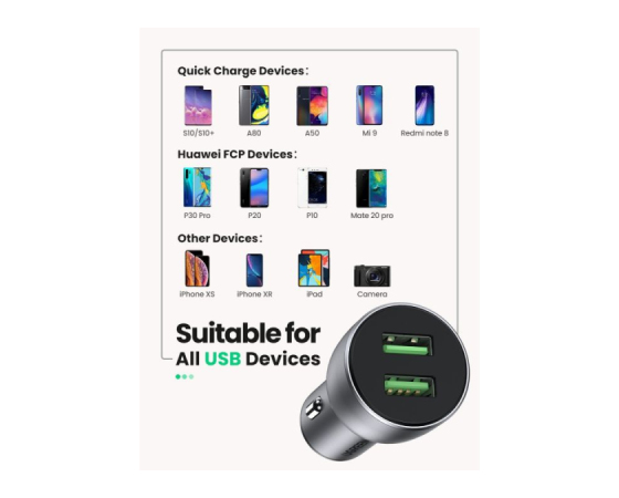 Avtomobilski polnilnik QC 3.0 polni večino naprav, kot so telefoni znamk Samsung S20/S10/S9/S8/S7/Note 10/Note 9/Note 8/A80/A70/A50/A8/A7/A5 Huawei P30 Xiaomi Redmi Note 8/ 7 Moto G7/G6 Nintendo Switch iPhone 11 Tomtom/Garmin Satnav itd...