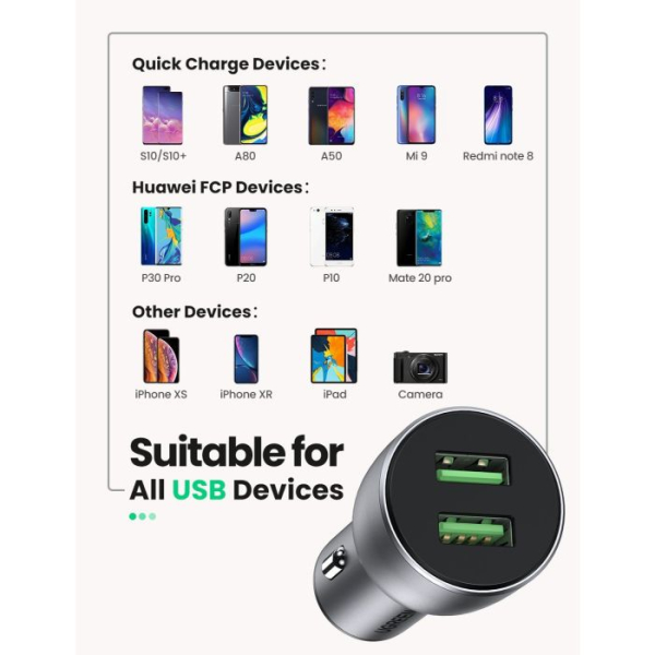 2 USB izhoda podpirata 36W skupne izhodne moči in omogočata polnjenje dveh naprav hkrati z zelo veliko hitrostjo.