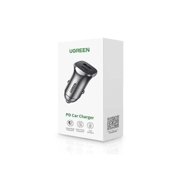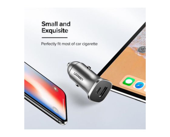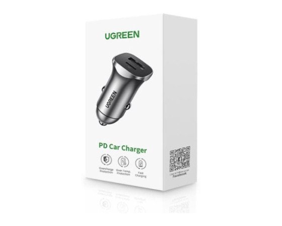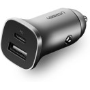 Ugreen avtopolnilec USB + USB-C PD 18W siv