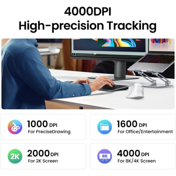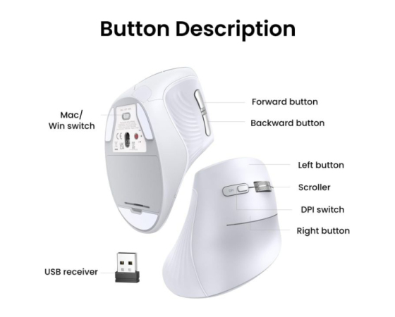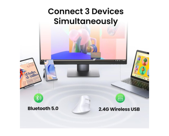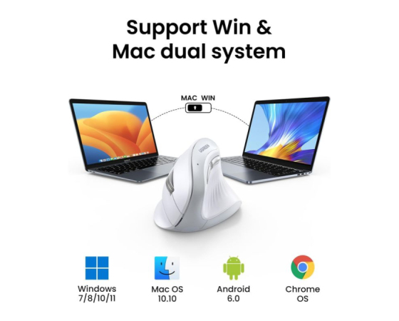 Navpična miška UGREEN je zasnovana z mislijo na široko razširjeno združljivost. Brezhibno deluje s sistemoma Mac in Windows ter z različnimi operacijskimi sistemi in napravami. Ta prilagodljivost zagotavlja, da se naša miška lahko prilega poteku dela in osebnim željam katerega koli uporabnika.
