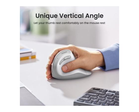 Navpična miška UGREEN je zasnovana z ergonomsko obliko, ki oblikuje naravno ukrivljenost vaše roke in zagotavlja udoben oprijem brez utrujenosti.