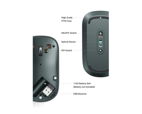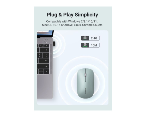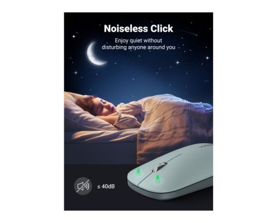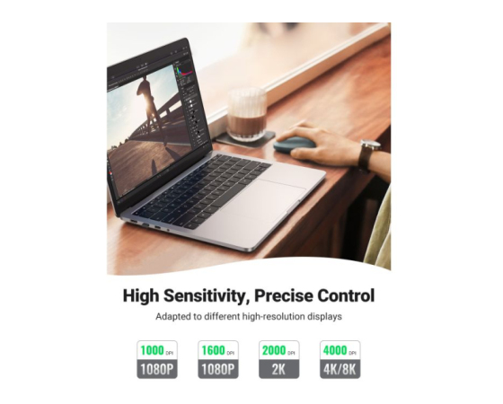 Brezžična miška UGREEN je tanka in tiha miška, ki deluje na 2.4GHz s 4000 DPI in zaradi naprednega čipa omogoča delovanje do 18-mesecev z eno baterijo (ni priložena).