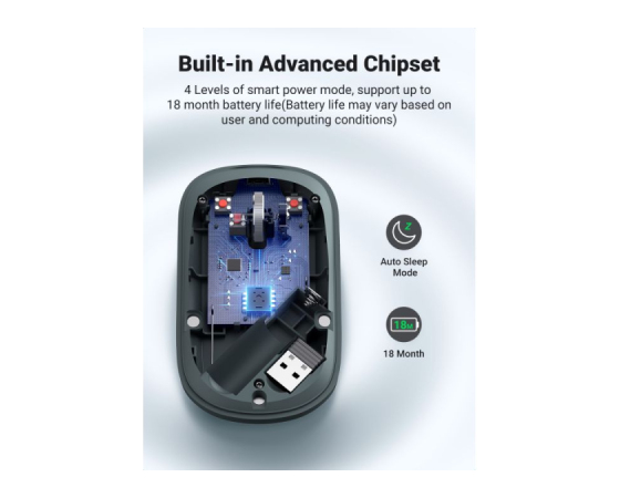 Napreden procesni čip z inteligentno tehnologijo za varčevanje z energijo brezžični miški omogoča delovanje do 18 mesecev.