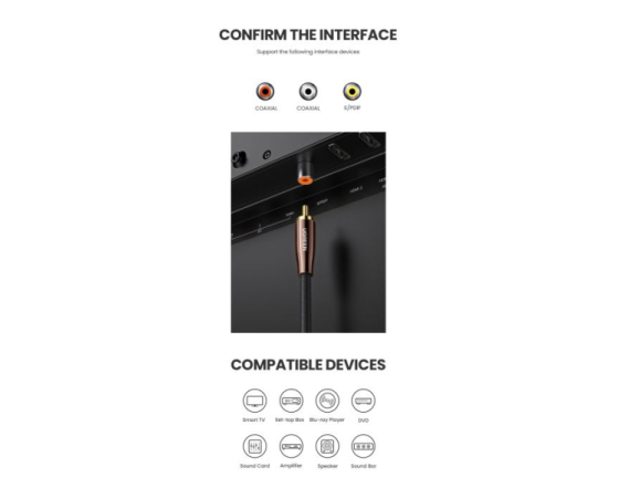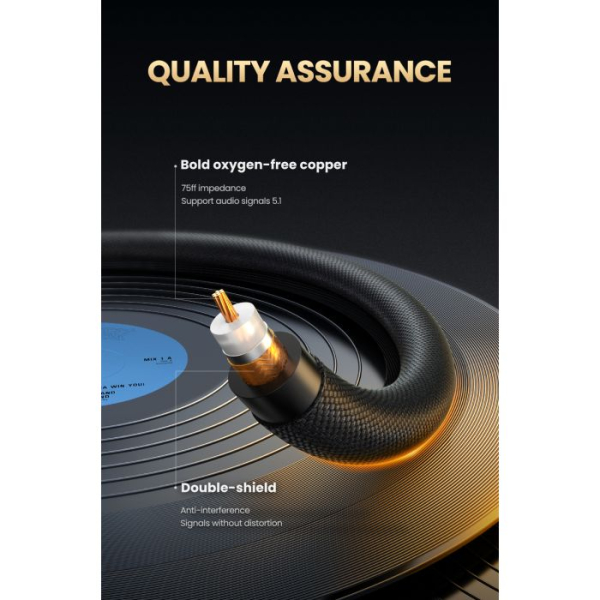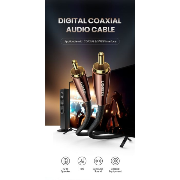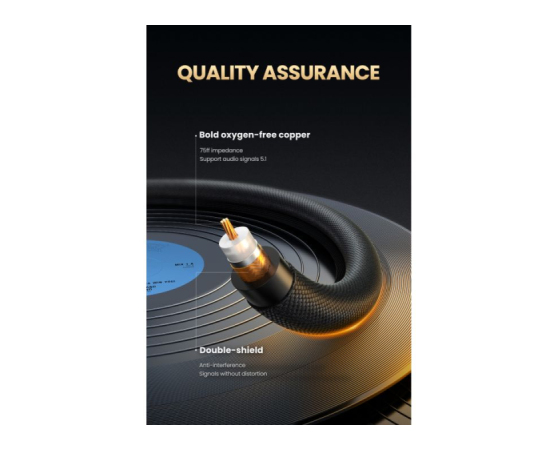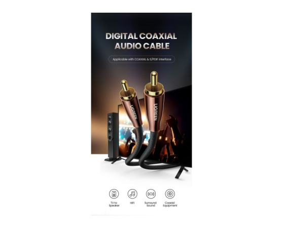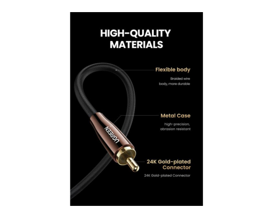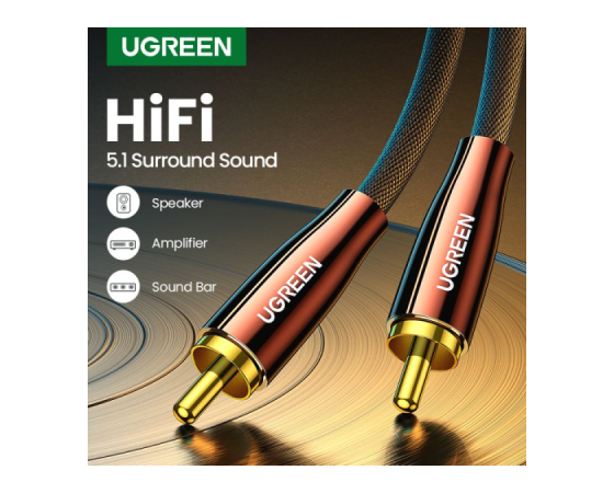 Ugreen Coaxialni S/PDIF kabel dolžine 3M.Jedro iz polne bakrene žiceKonstantna impedanca 75 Ω 5,1-kanalniKonektor pozlačenOhišje iz bakrove zlitine + pletenicaDolžina: 3M