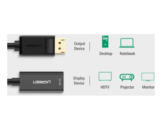 Pretvornik Ugreen DisplayPort v HDMI lahko brezhibno poveže prenosni računalnik, namizno ali grafično kartico, opremljeno s tehnologijo DisplayPort, na HDTV, monitor ali projektor z vhodom HDMI. Lahko prenaša tako avdio in video iz računalnika na HDTV zaslon in podpira video ločljivosti do 4K, kar je idealno za vašo pisarno, zaslon za domače razvedrilo, konferenčne sobe, sejme in drugo.