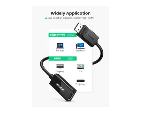 enosmerni pretvornik DisplayPort v HDMI za pretakanje videa in zvoka UHD iz računalnika v HDTV, monitor, projektor. Uživajte v vizualni pojedini večjega zaslona. Ni dvosmerno: ne podpira HDMI v DP