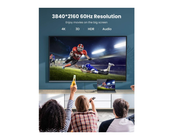 vmesnik Display port to HDMI podpira ločljivost 4K do 3840*2160 pri 60Hz, nazaj združljiv z 2560*1440@120Hz, 1920*1080@144Hz, kar je idealno, da kar najbolje izkoristite svoj novi 4K TV in monitor