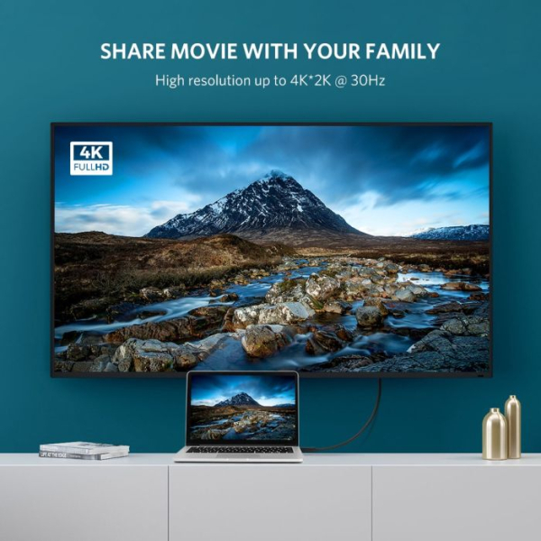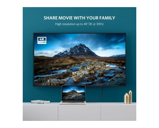 UGREEN DisplayPort na HDMI kabel je idealen za delo, pretakanje videov, 3D ogled in igranje. Odlična izbira za izgradnjo domačega kina in uživanje v sistemu za domače razvedrilo. HDMI kabel podpira ločljivost do 4Kx2K UHD, vključno s 3840x2160, 2560x1600, 2560x1440, 1920x1200 in 1080p.