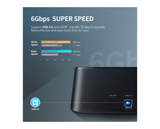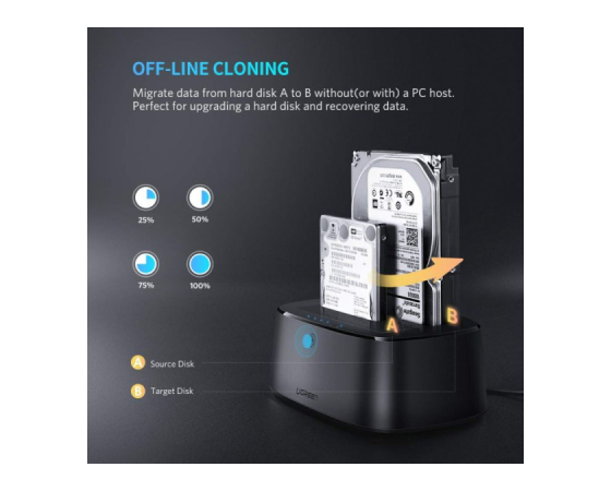 Dvojna priključna postaja UGREEN za zunanji trdi disk omogoča hiter in varen prenos podatkov za 2,5/3,5 palčni trde diske / SSD in PC / Laptop / TV / PS4 / PS3 / Xbox One / Xbox 360. Podpira trdi disk do 2 x 12TB. Super hiter prenos 1 GB filma v 3 sekundah z UASP-om je veliko hitreje kot pri običajnem priklopu USB 3.0 na trdi disk.