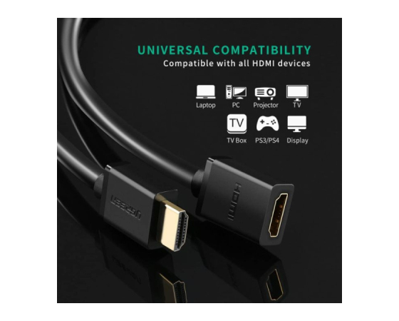 UGREEN HDMI podaljšek omogoča priklop HDMI s televizorjem, monitorjem, projektorjem in ostali napravami.