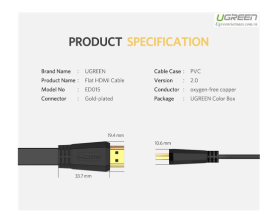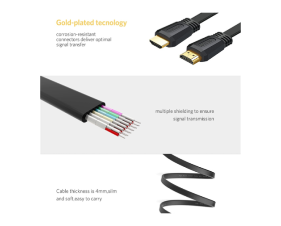 HDMI kabel proizvajalca UGREEN dolžine 3m bo zagotovil neprekinjeno predvajanje video in drugih vsebin. Zaradi posebne ploščate oblike se razlikuje od drugih HDMI kablov, tako bo zavzel manj prostora.