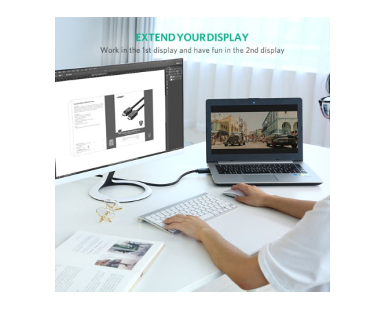 Zrcaljenje ali razširitev računalnika: v zrcalnem načinu si lahko ogledate zaslon prenosnega računalnika ali namizja ali video na zaslonu ali televiziji, enostavno igrate igre ali filme na televizorju. Za podaljšani način lahko drugi monitor priključite na računalnik, da dobite večje namizje, na katerem bodo delali;