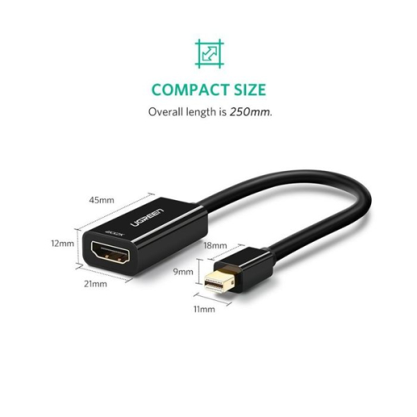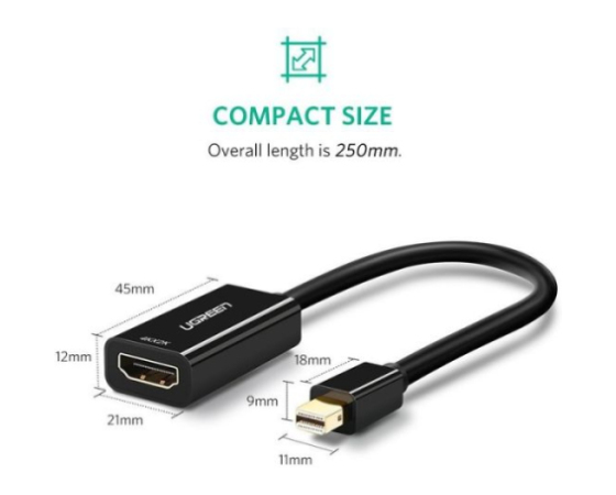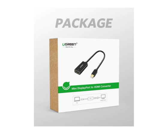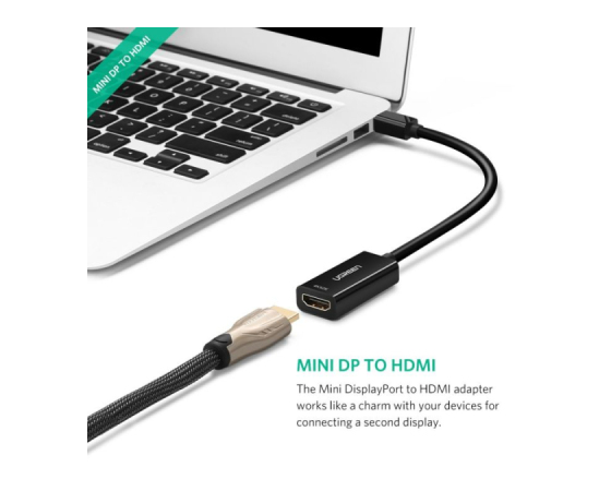 Adapter UGREEN mini DisplayPort na HDMI omogoča povezavo računalnikov z mini DisplayPort na veliko večji zaslon, HDTV ali projektor s priključkom HDMI. To vas razbremeni omejene velikosti zaslona od prenosnega računalnika do večjega prikaza pri gledanju filmov ali igranju iger.