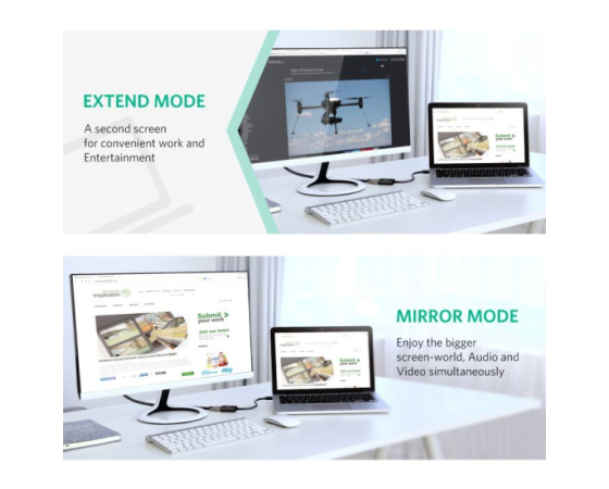 Predstavite vsebino iz računalnika v zrcalnem načinu, da vas bodo drugi spremljali, medtem ko boste govorili, predstavljali, sestajali itd. Večopravilnost z razširjenim načinom delovanja pri zunanjem zaslonu, lahko podvojite delovni prostor ali uživate v filmu, ko opravljate nekaj lahkih opravil; Ostra slika s 4K ločljivostjo Mini DisplayPort Adapter lahko podpira ločljivost do 3840x2160 @ 30Hz. Svetlejše in ostrejše slike vas potopijo v bolj živ svet. Idealen je za domači kino.