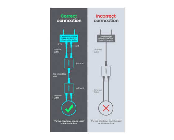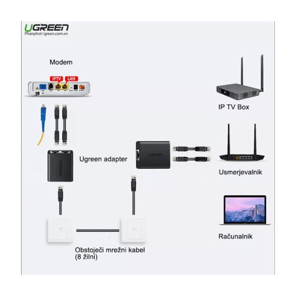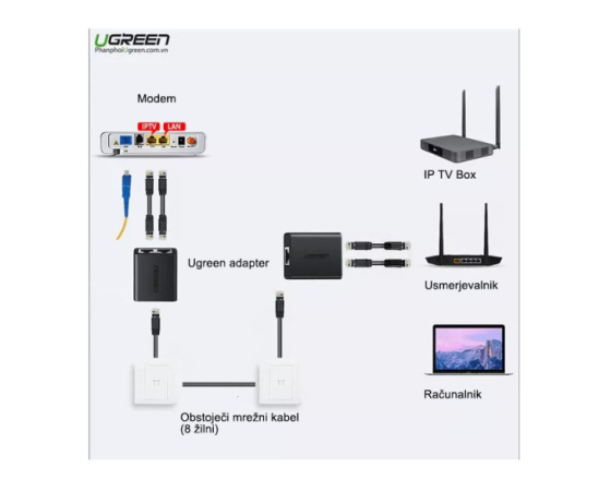 Mrežni razdelilnik Ugreen signal preko enega UTP kabla razdeli na dva dela.