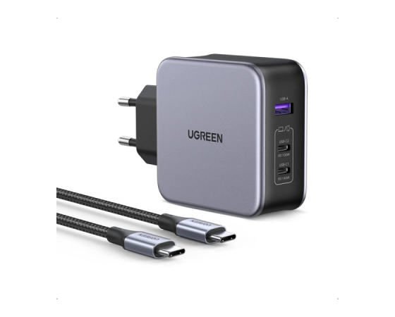 UGREEN Nexode 3 portni 140W USB-C polnilnik s PD 3.1 GaN združljiv z MacBook Pro 16" 2021, Dell XPS, iPhone 14 Pro Max/Pro/14/13, Galaxy S22 Ultra/S22/S21, Steam Deck itd.