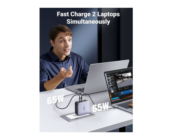 Z novim Nexode 140 W pa je mogoče polniti tudi dva prenosnika z izhodom moč 65 W na vratih C1 in C2 se polni hkrati.